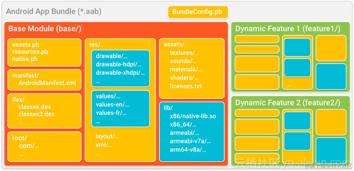 Android App Bundle 支持模块化,通过Dynamic Delivery with split APKs,将一个apk拆分成多个apk,按需加载(包括加载C/C++ libraries),这样开发者可以随时按需交付功能,而不是仅限在安装过程中。
