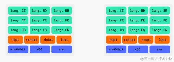 - (左)旧版 APK 交付样例 - 将全部资源都交付至设备;