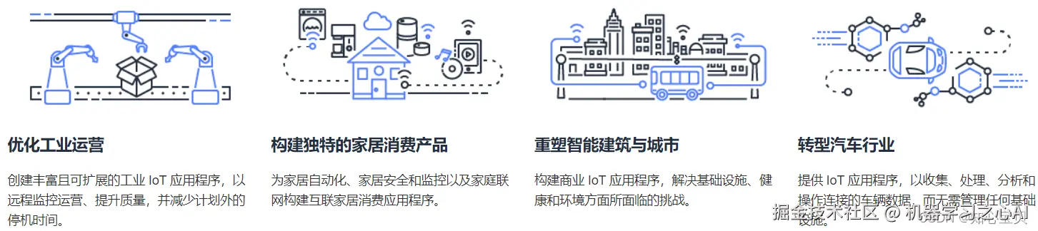 - aws物联网服务可以连接和管理数十亿台设备,存储和分析工业、家居消费、商业和汽车业工作负载数据,形成了庞大的云服务生态系统。