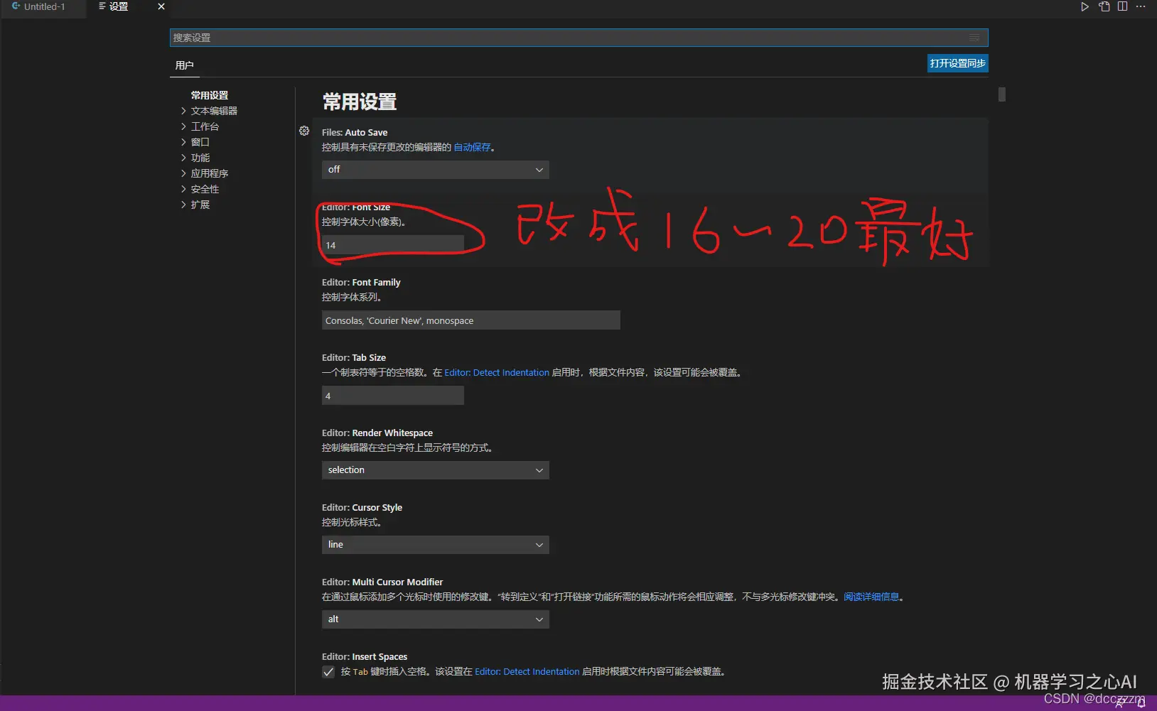 还有,字体大小最好设置为 20 左右。