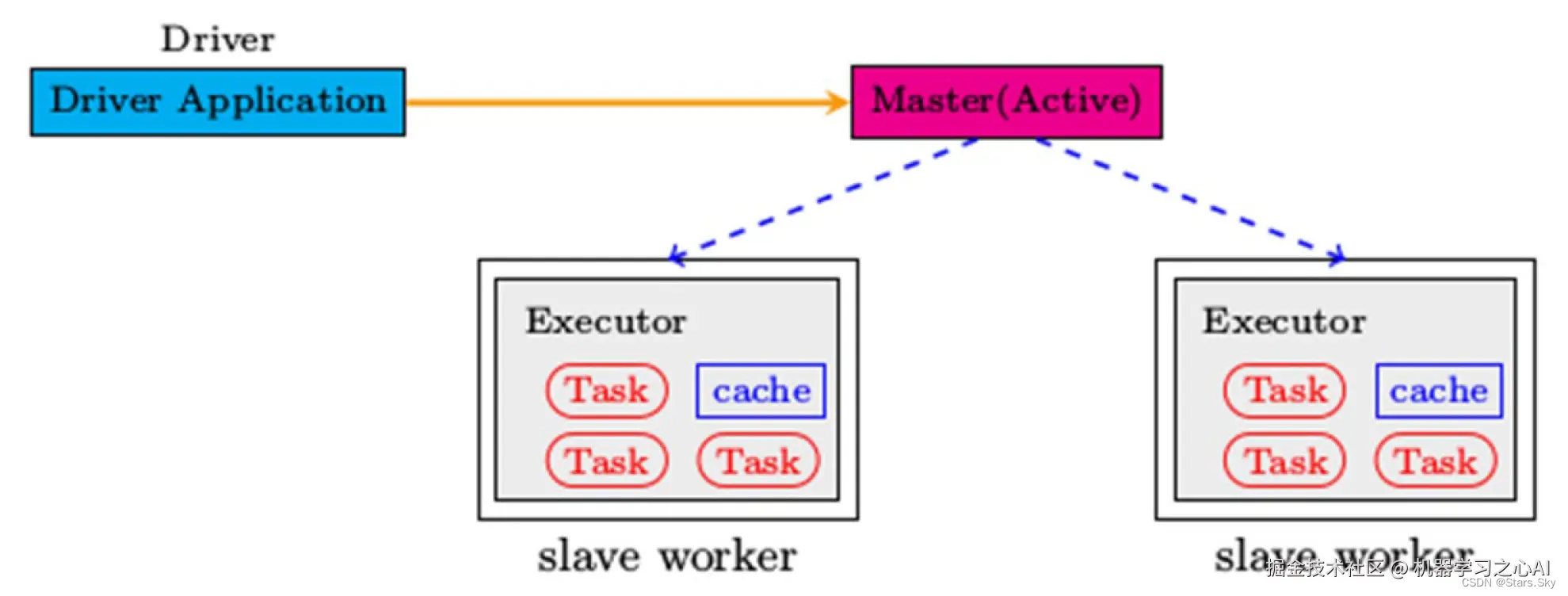 - Master 角色以 Master 进程存在,Worker 角色以 Worker 进程存在;