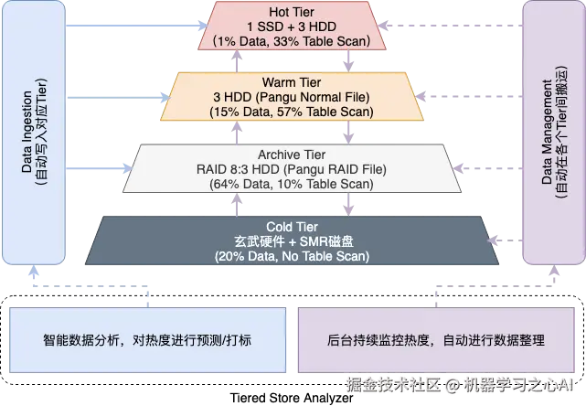 如何智能/透明的将数据存储分层,找到成本与性能的Trade-off,是多层存储系统的关键挑战。这领域起步不久,开源领域没有显著好的产品,最好的水平由几个大厂的自研数仓存储系统引领。