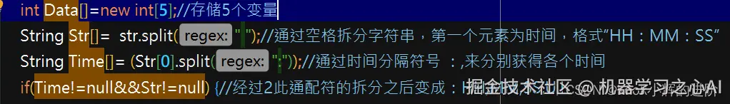 String Str[]= str.split(" ");//通过空格拆分字符串,第一个元素为时间,格式“HH:MM:SS”