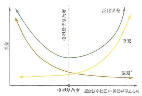 泛化误差、偏差、方差和模型复杂度的关系(图片来源百面机器学习)