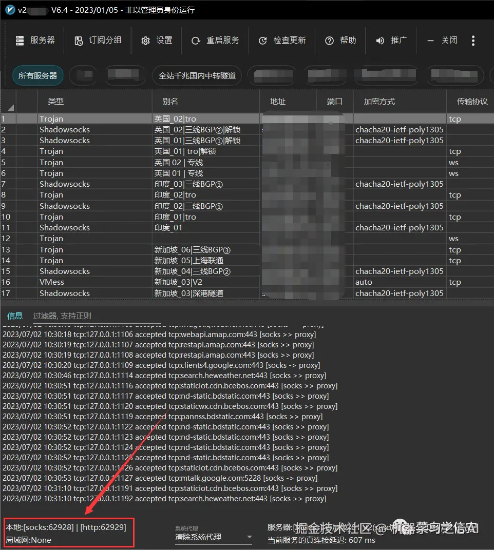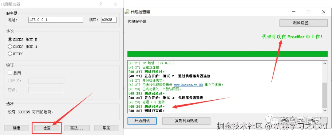 注:使用本地代理端口,请先测试本地客户端的代理能否可用