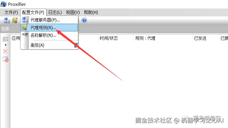 点击菜单栏“配置文件”中的“代理规则”