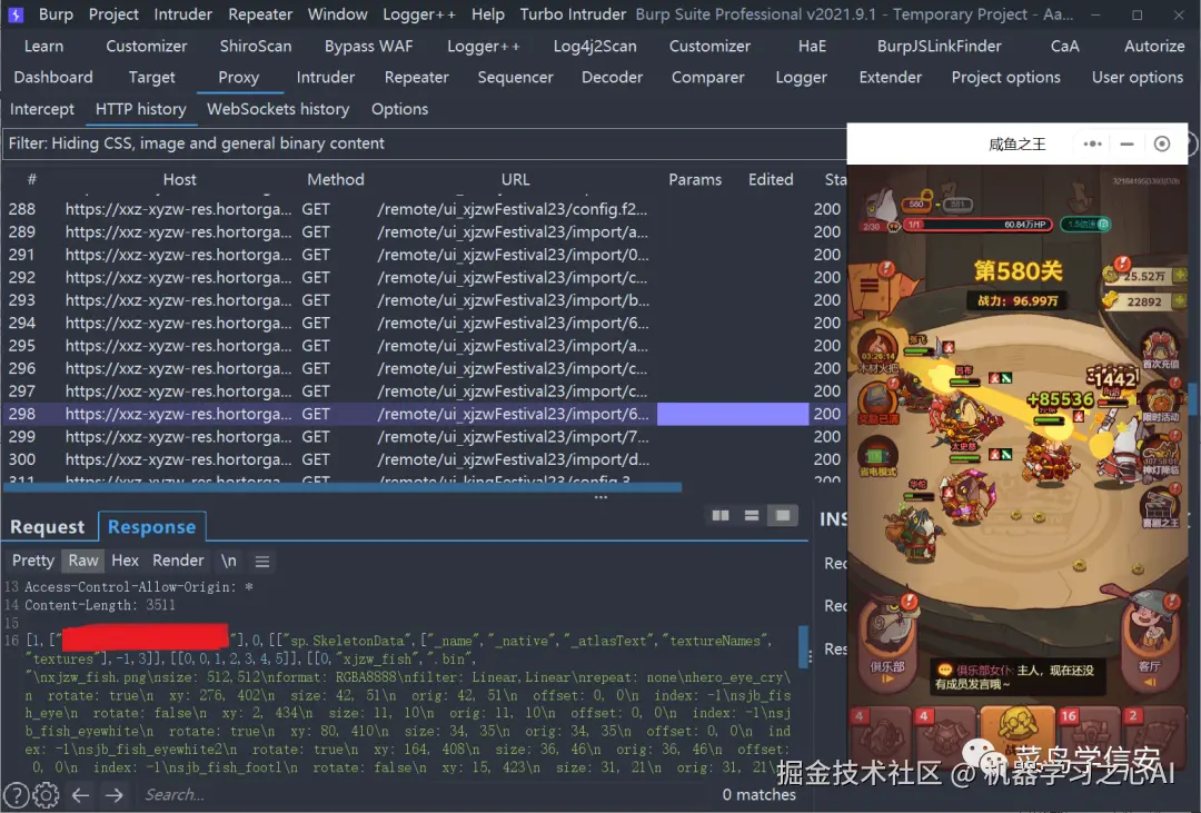 随便找个小程序,然后看Burp中 Proxy 的 HTTP History 有无反应: