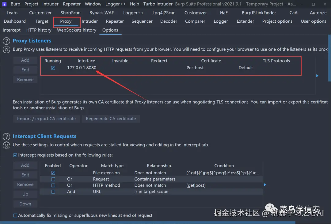 注:这里Burp中 Proxy 的 Intercept 要选择将流量放行