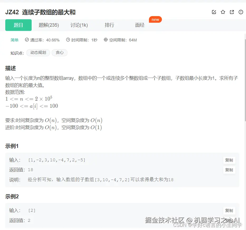 JZ42 连续子数组的最大和