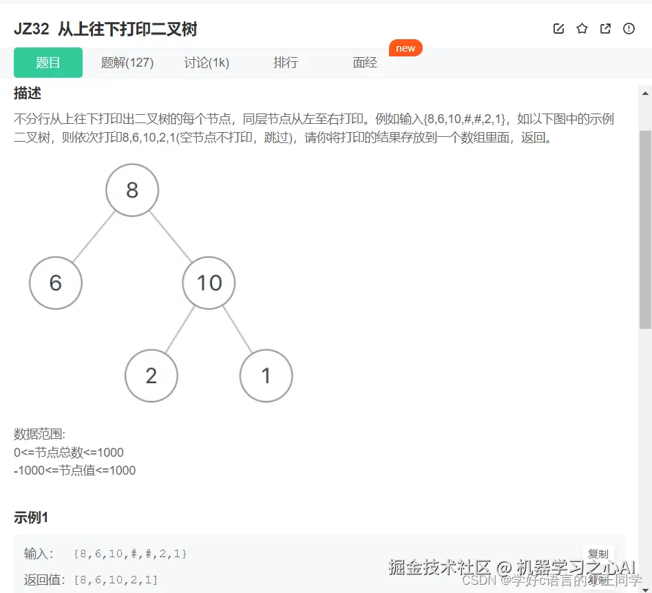这道题是一道经典的二叉树的层序遍历问题 考虑用bfs(广度优先搜索)