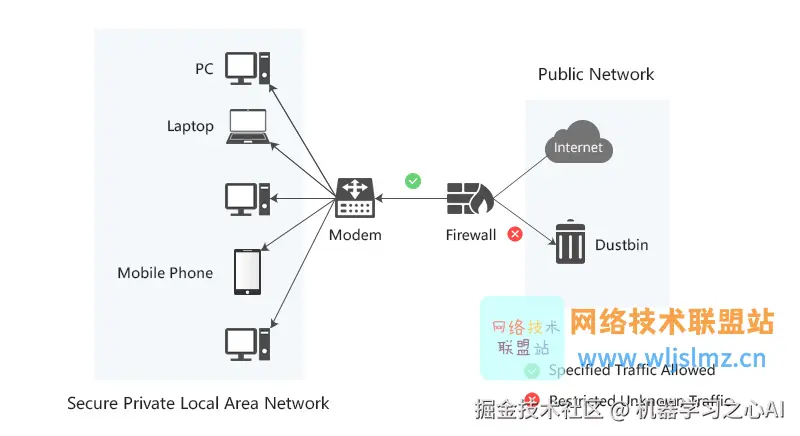 它可以使用 IP 地址、端口号和协议过滤计算机流量。例如,将 IP 地址视为房屋,将端口号视为房屋内的房间。只有受信任的人(源地址)才能进入房屋(目标地址)。然后进一步过滤,使屋内的人只被允许进入某些房间(目的地端口),这取决于他们扮演的角色(主人、孩子或客人)。所有者可以进入任何房间(任何端口),而儿童和客人可以进入特定的房间(特定端口)。
