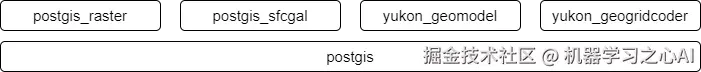可以看到在空间处理方面,YuKon都是基于PostGis进行扩展,模块之间的依赖关系如下图,: