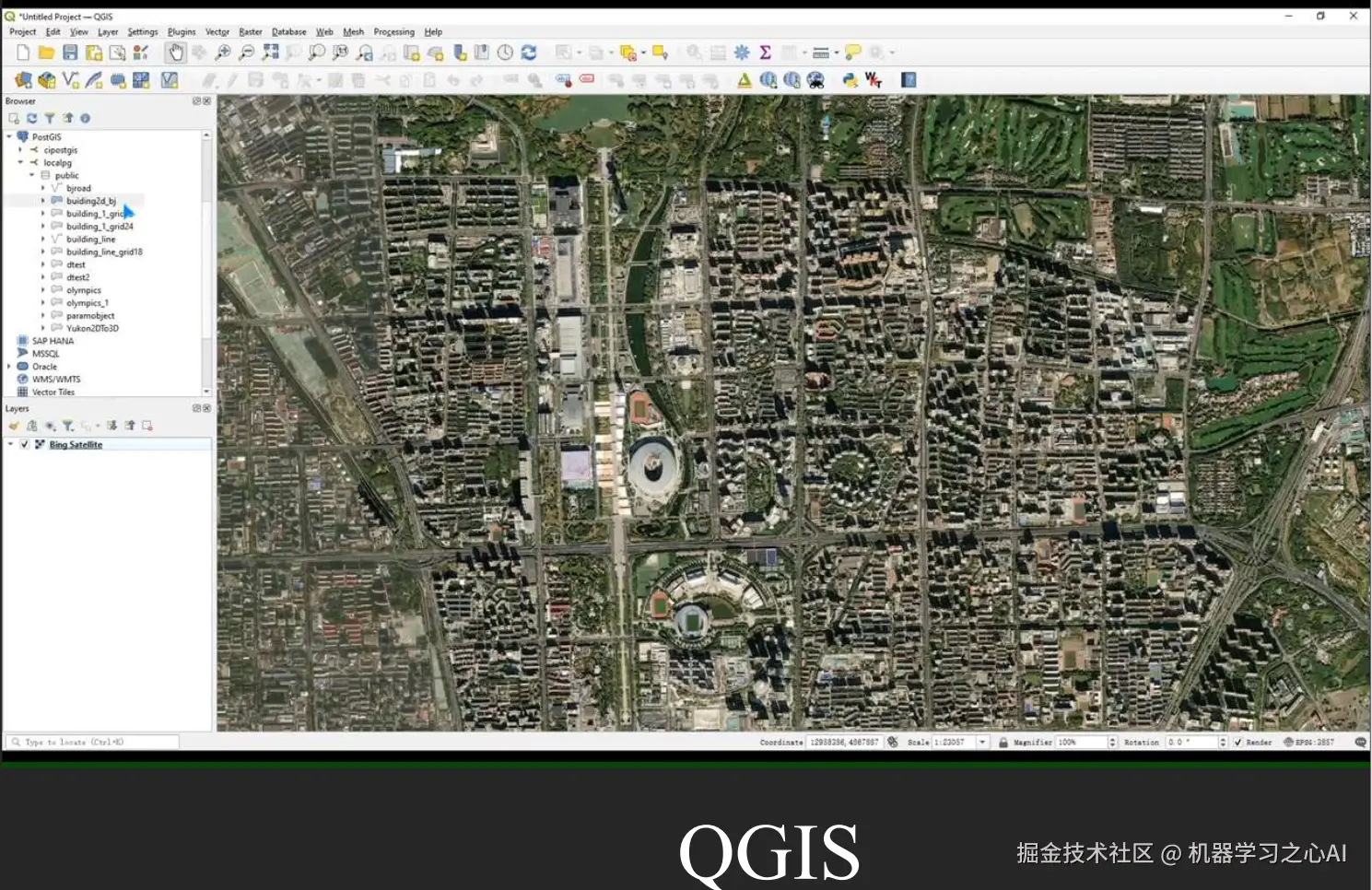 可视化工具:DBeaver、QGIS或SuperMap iDesktopX;本文为展示三维场景效果,使用SuperMap iDesktopX。对二维点、线、面数据的geometry列计算geosotgrid,并转换为geometry对象;示例数据:building_point_demo、builing_line_demo、building_region_demo