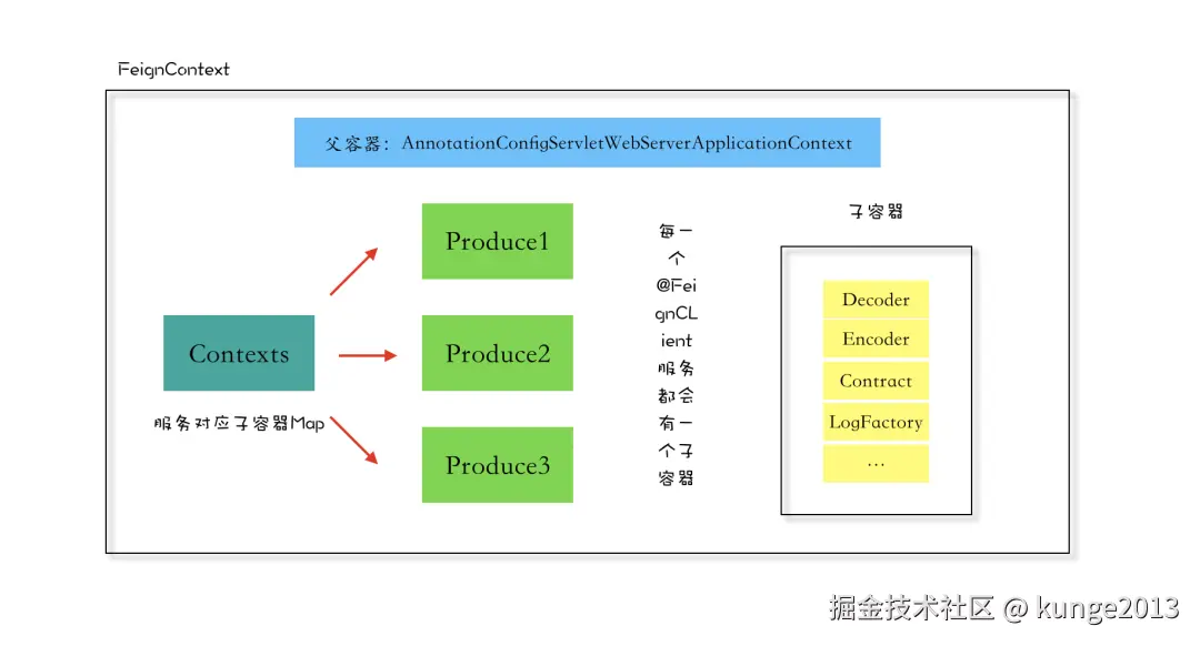 如法炮制,Feign.Builder、Encoder、Decoder、Contract 都可以通过子容器获取对应 Bean