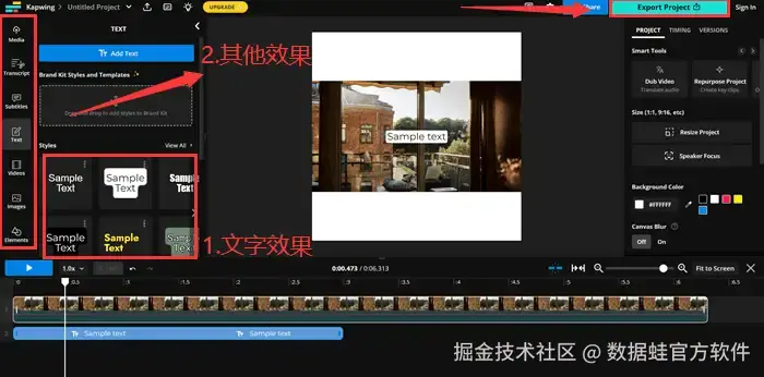 缺点:Kapwing的网站是全英文的,且因为功能较多,排版让人眼花缭乱,为用户带来不便。