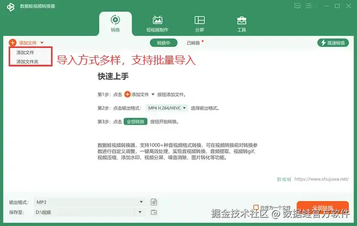 数据 蛙视频转换器是一款功能丰富的视频处理软件,它不仅支持多种视频格式的转换,还提供了视频mp4转gif格式的功能。数据 蛙还支持视频的编辑和剪辑,用户可以在原视频进行剪辑、添加字幕和水印等操作。