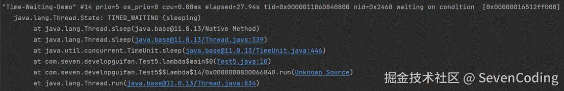 RUNNABLE:可运行状态,可运行状态可以包括:运行中状态和就绪状态。也就是 可能正在运行,也可能正在等待 CPU 时间片。