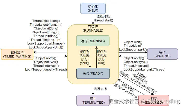 设置了 Timeout 参数的 Object.wait() 方法 | 时间结束 / Object.notify() / Object.notifyAll() |