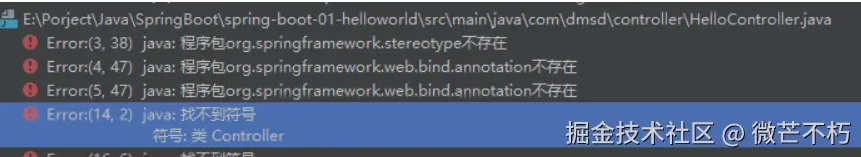 这些导入语句引入了 Spring Boot 的核心类。SpringApplication 用于启动应用程序,@SpringBootApplication 是一个组合注解,包含了多个功能(如自动配置、组件扫描等)。