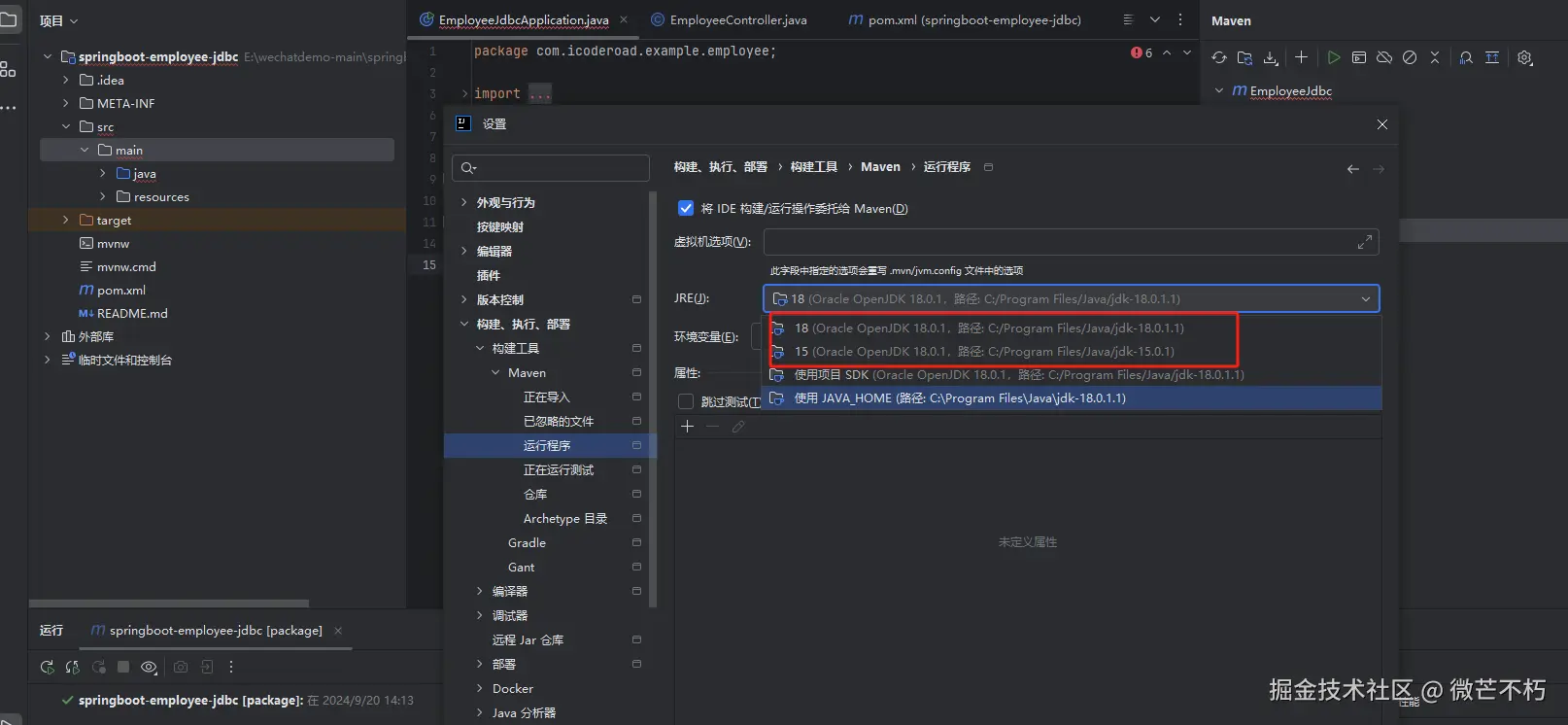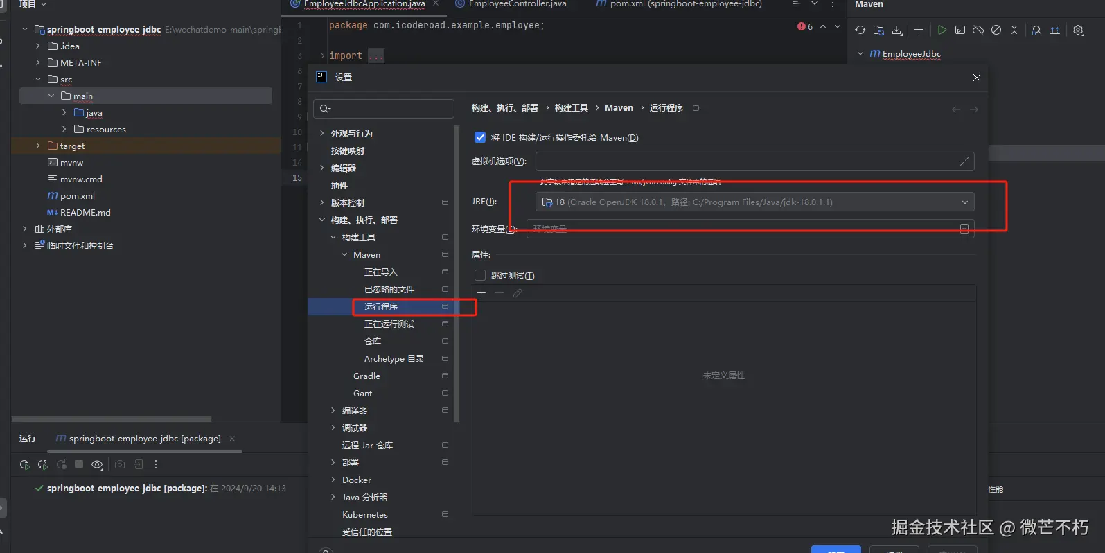 1.File—>Settings----->Build,Execution,Deployment——>Maven——>Runner——>选择Delegate IDE,选择自己安装的JRE的路径
