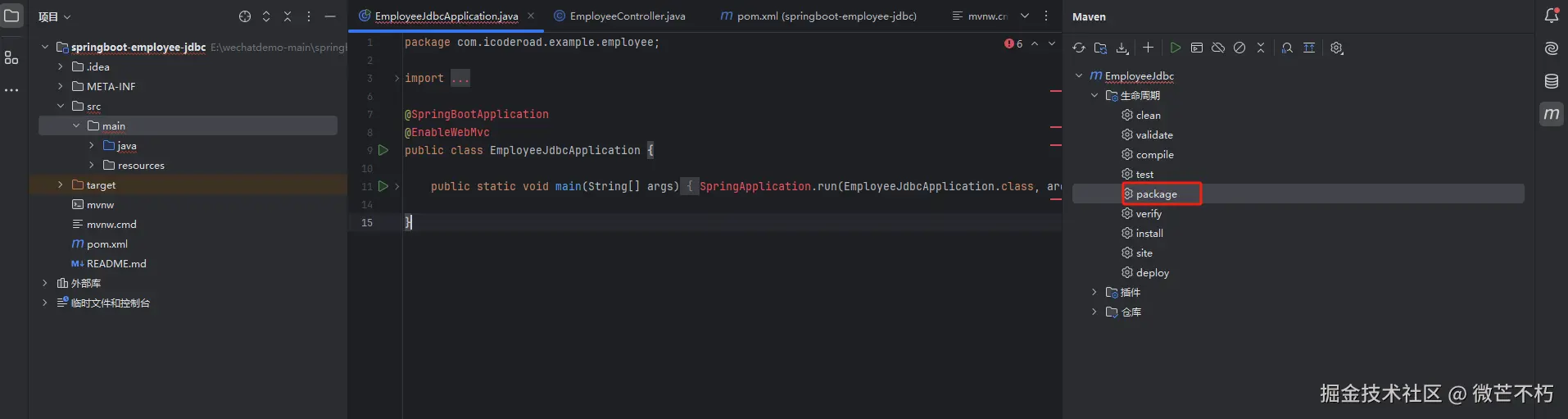 这是应用程序的主类,使用 @SpringBootApplication 注解标记,表示这是一个 Spring Boot 应用。