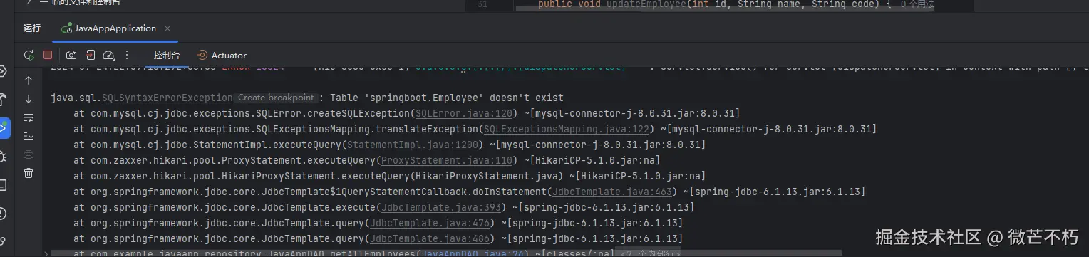 javaAppDAO.createEmployee(employee.getName(), employee.getCode()); // 调用服务层方法添加员工