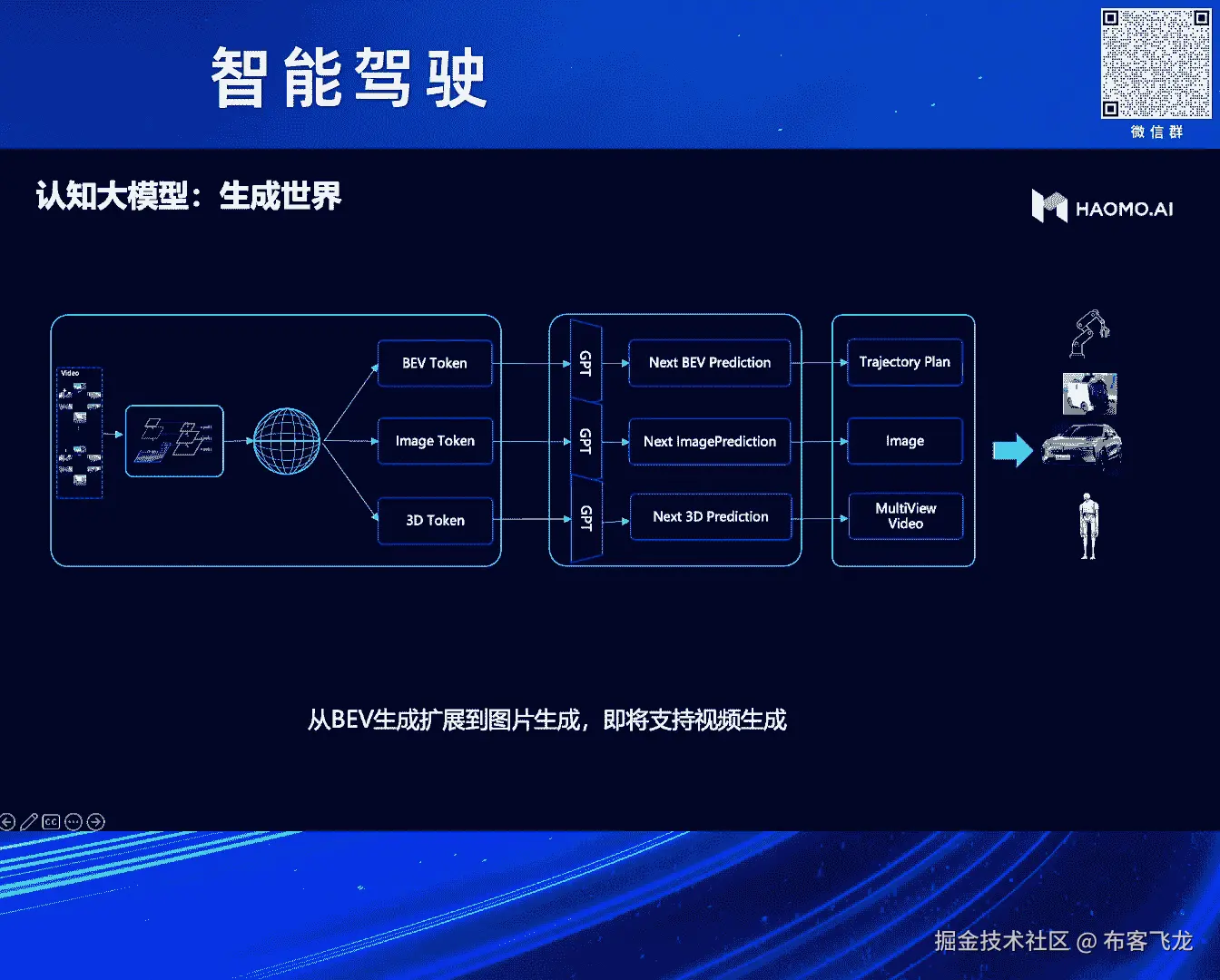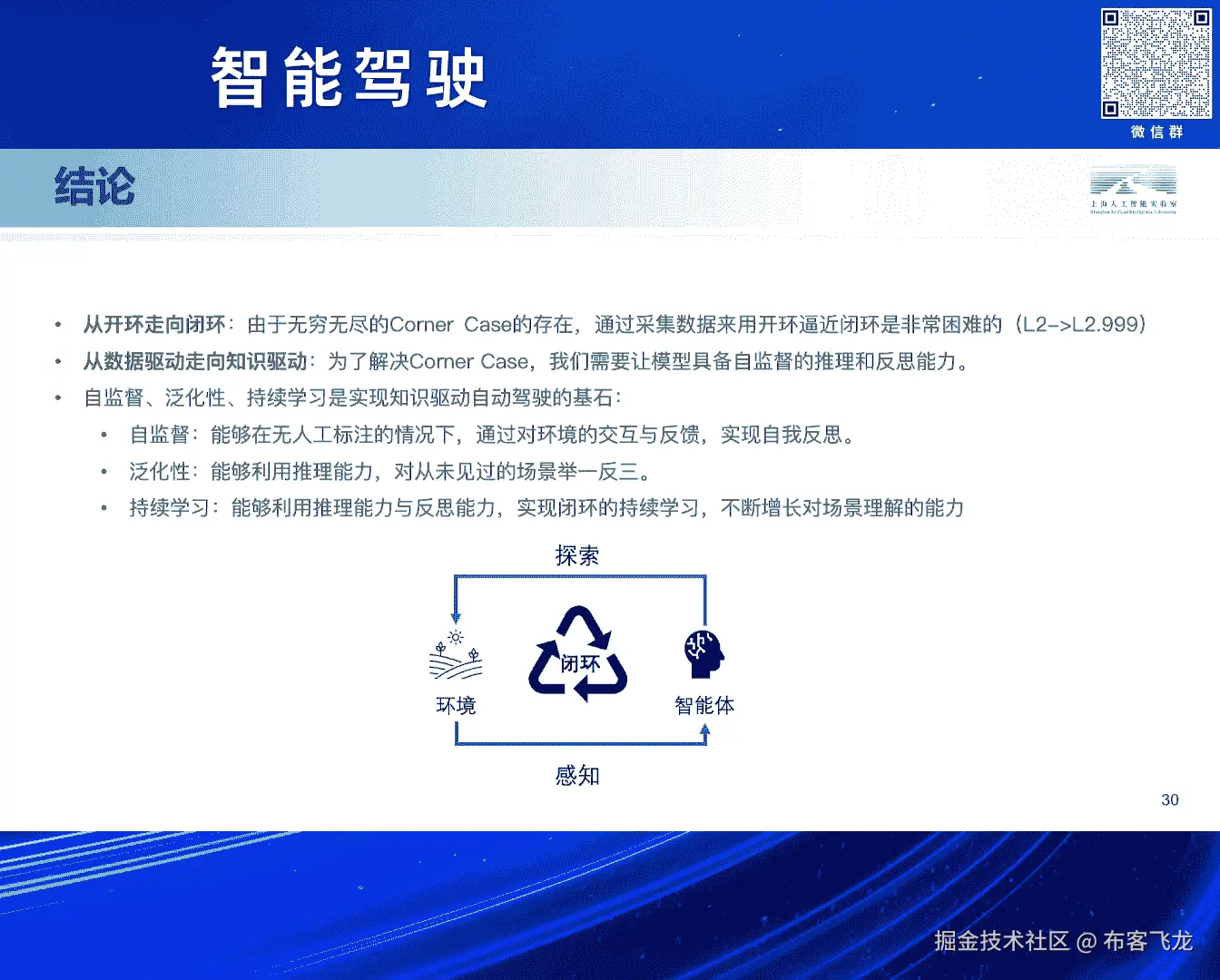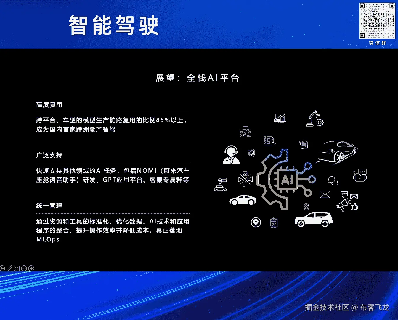我们也可以展望未来,那用在脚踏实地的同时,我们也仰望星空,自动驾驶的发展也充满了无限的可能,接下来呢我愿意分享几个关键方向的一些看法,包括端到端的大模型,全站的AI平台以及群体智能技术。