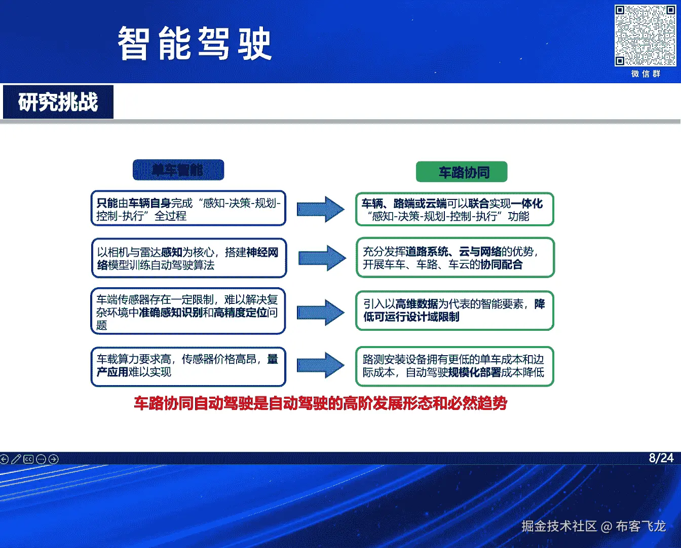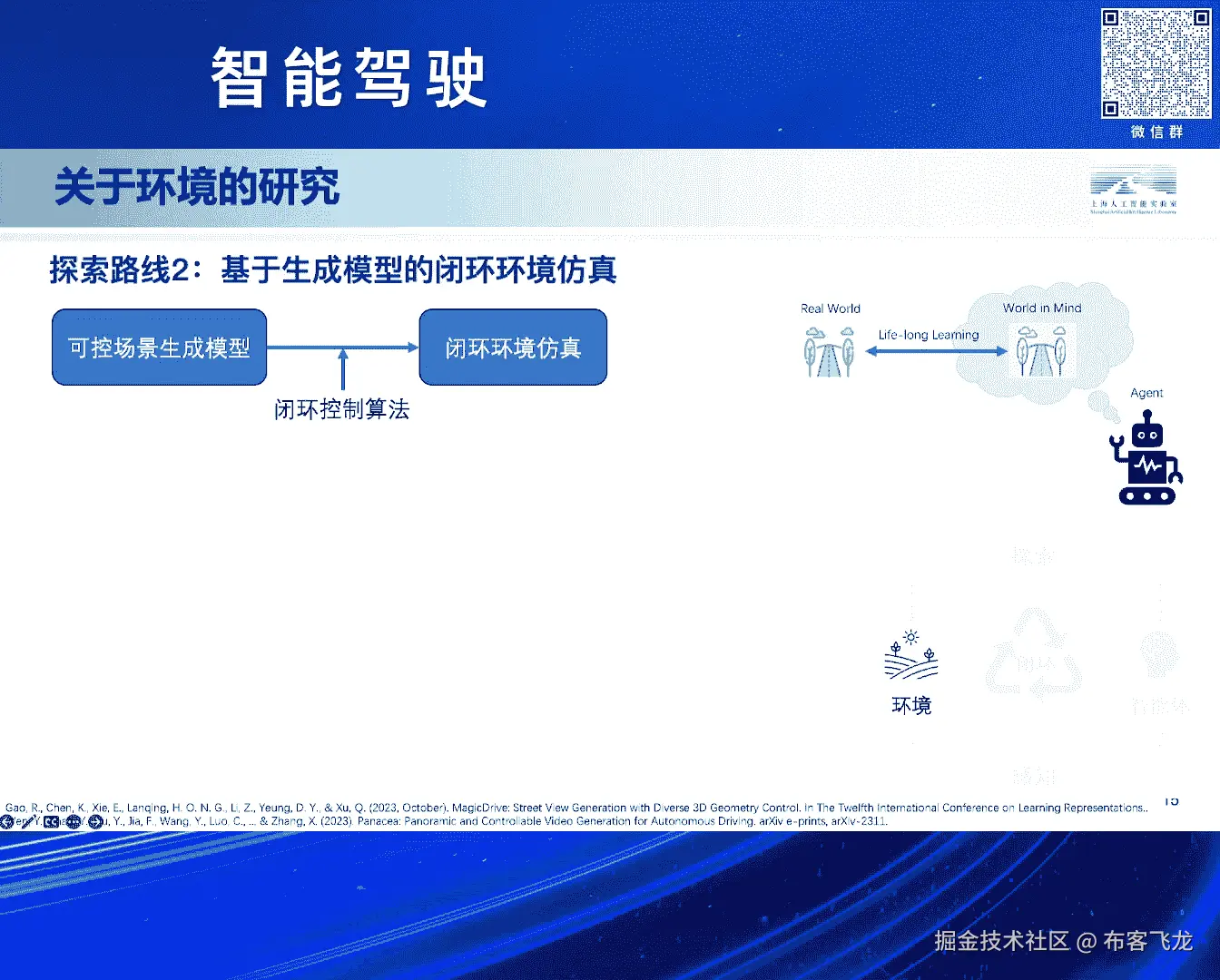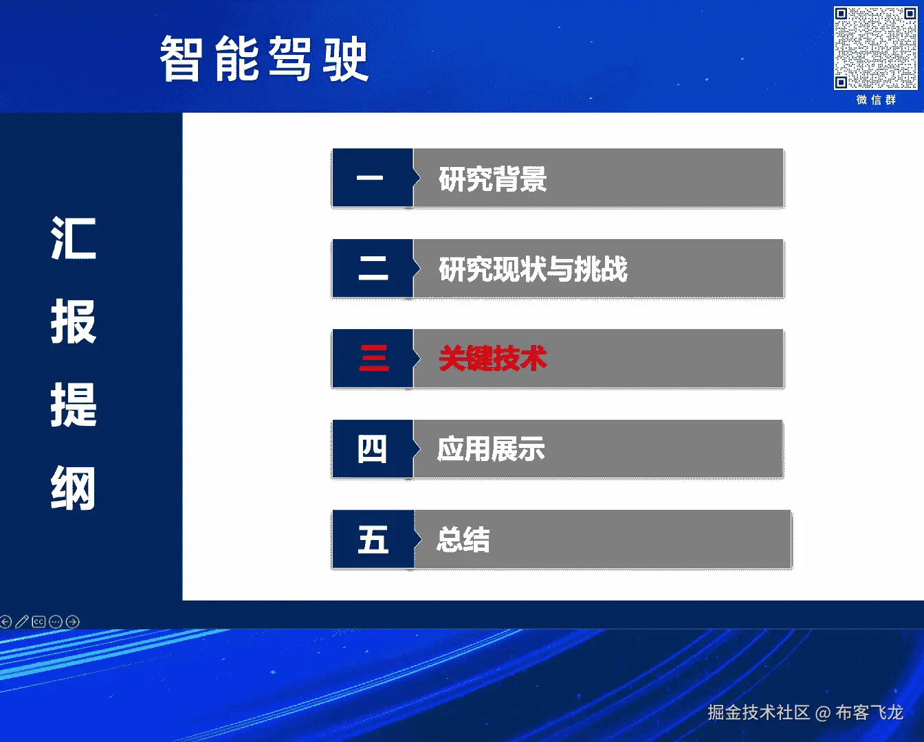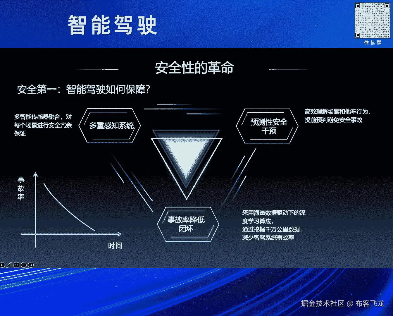 我们也可以展望未来,那用在脚踏实地的同时,我们也仰望星空,自动驾驶的发展也充满了无限的可能,接下来呢我愿意分享几个关键方向的一些看法,包括端到端的大模型,全站的AI平台以及群体智能技术。