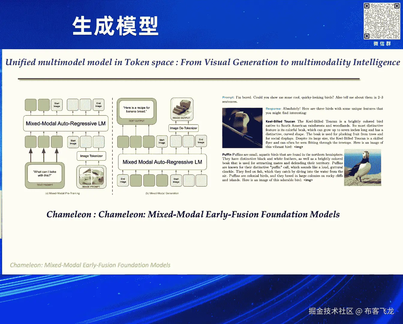 这个next token的话,包括图像token或者文本token去COCH,那它训出来的这种语言模型啊,就或者动态模型不仅具有语言模型能力,还具有生成模型的能力,方法非常简单。