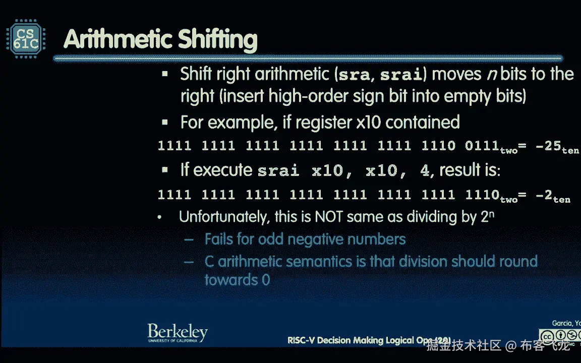 如果我们把二进制数,如果我们转移,如果我们做一个向右的算术移位,我们可以做的就是加上我们可以去掉这个零,然后在后面加一个零,但是,在二进制数是1-1-0的情况下,发生的事情是,我们会,从理论上讲。