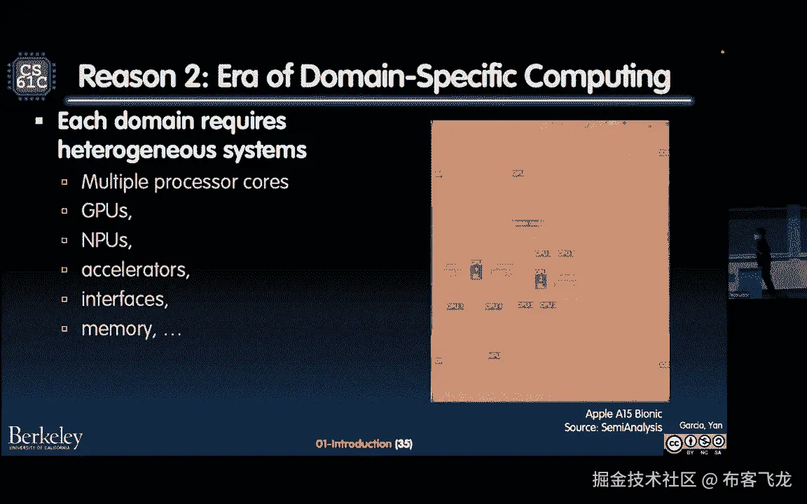 新时代来临了,或者是一个叫做领域特定计算的时代的回归,我的意思是每个领域都需要异构的系统,之前谈到了一点图形,这与机器学习有何不同,Gpus和神经处理单元,Npus是不同的,所以这里实际上是一个15。