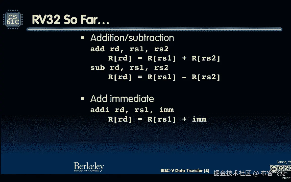 几乎就是把两个寄存器加在一起,把这个值放入一个新的寄存器,还有什么,然后耶,我们实际编写和注册的一个例子是这样的,加x三x二x一,因为我们的语法在本例中是我们的目标寄存器,然后源寄存器1和源寄存器2。