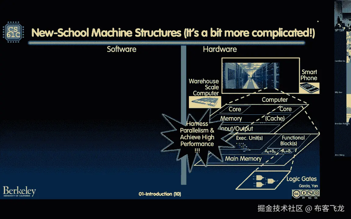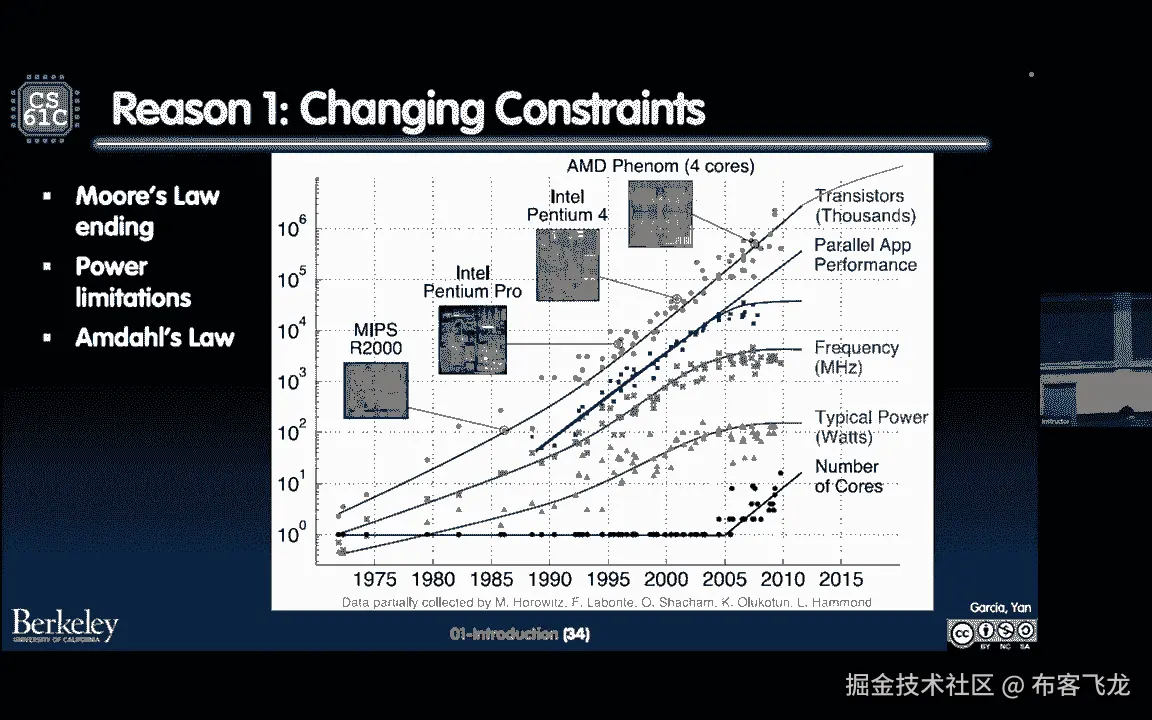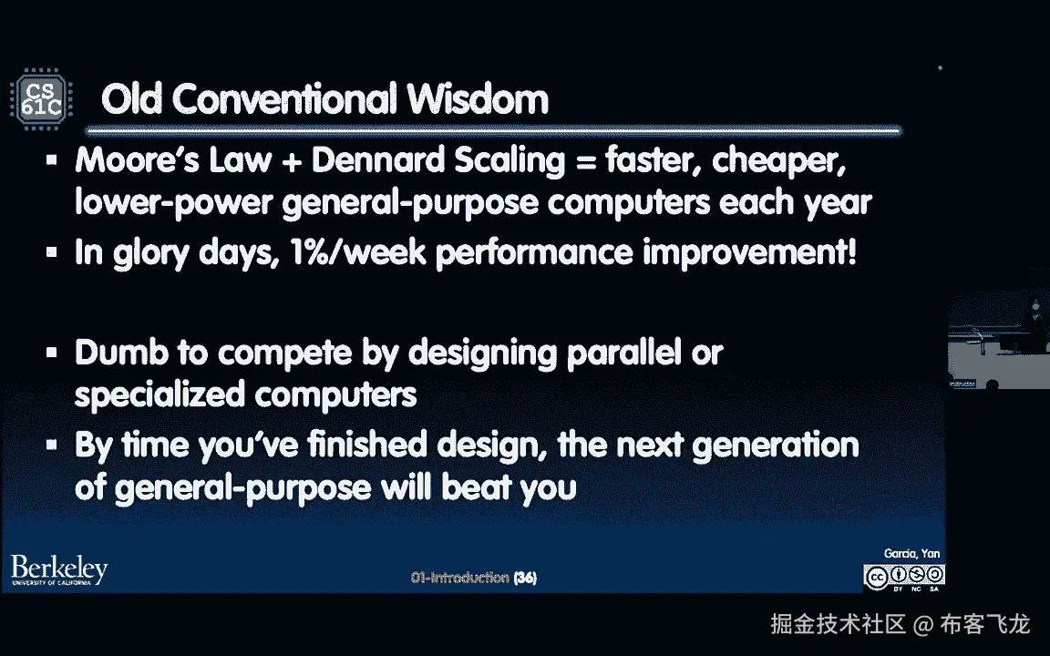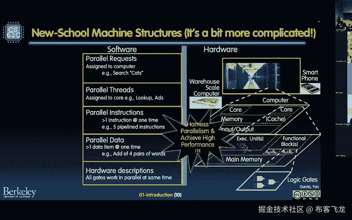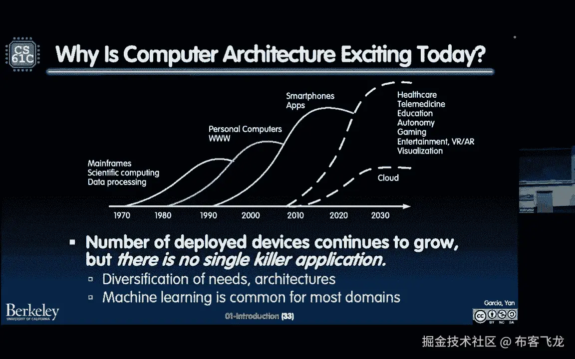 最后,为什么伯克利很重要,几年前,大卫帕特森和约翰轩尼诗凭借他们的思想获得巡回演出奖,围绕平行,以及周围的城市,呃,围绕计算机体系结构,我这里有一个小幻灯片吗,所以他们做的一件事就是。
