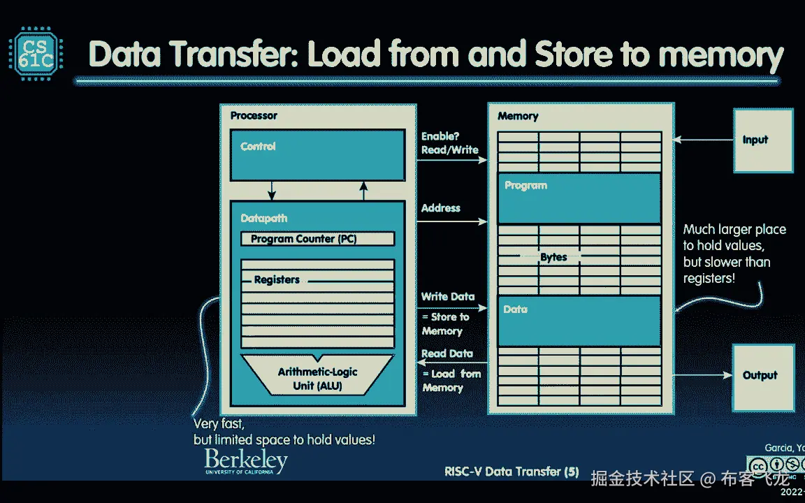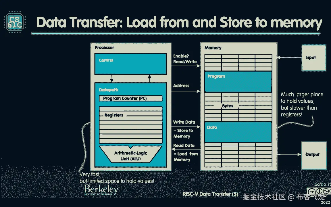 我们在前面的图表中提到了一点,但它展示了我们如何,您可以通过使用某些指令来与主存和我们的数据路径交互,然后CPU可以通过寄存器存储内存,登记册,它们是CPU中存储二进制文件的硬件组件,他们在风险5,呃。