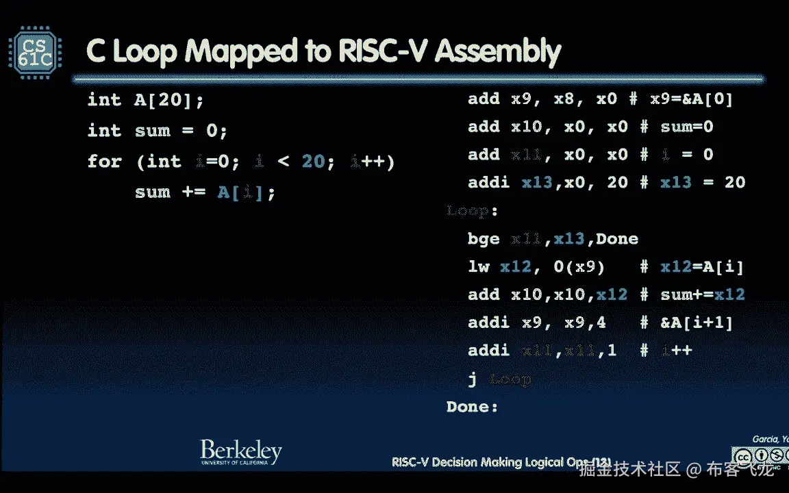 我们会把4加到x9,然后我们把1加到x上,我们会在x11上加一个,然后我们简单地调用j循环,这样我们就可以回到循环的开始,继续下去,直到我们到达分支指令,然后在我们完成后跳转完成,是呀。