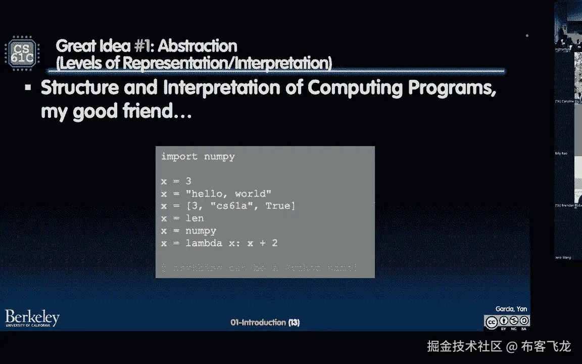你会开始越来越了解他们,头号抽象,你们都拿了六十一,或者你们中的大多数人都拿了61分,抽象是您在Python中反复看到的东西,我们有点事情,在那里一切都可以是一个名称函数,图书馆价值。