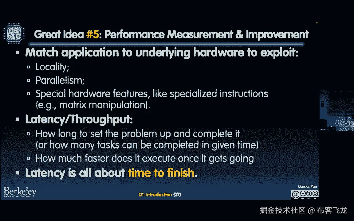 你想欣赏艺术是好是坏什么的,你知道这里缺少一些指标,所以计算机体系结构中的一个伟大的想法是如何改进这个想法,所以我们要把重点放在权衡上,这两个指标,即延迟和吞吐量,延迟是指从你得到任务到。