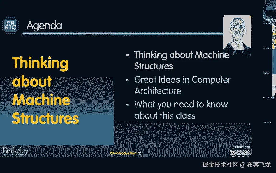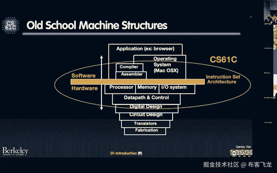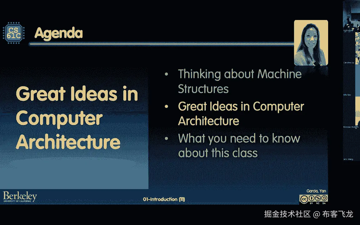 别滑倒了,这就像肥皂一样的东西,我要把它交给丽莎,接手第二部分,我们走右边,好啦,本课程名为计算机体系结构中的伟大思想,我要向你展示伟大的想法。