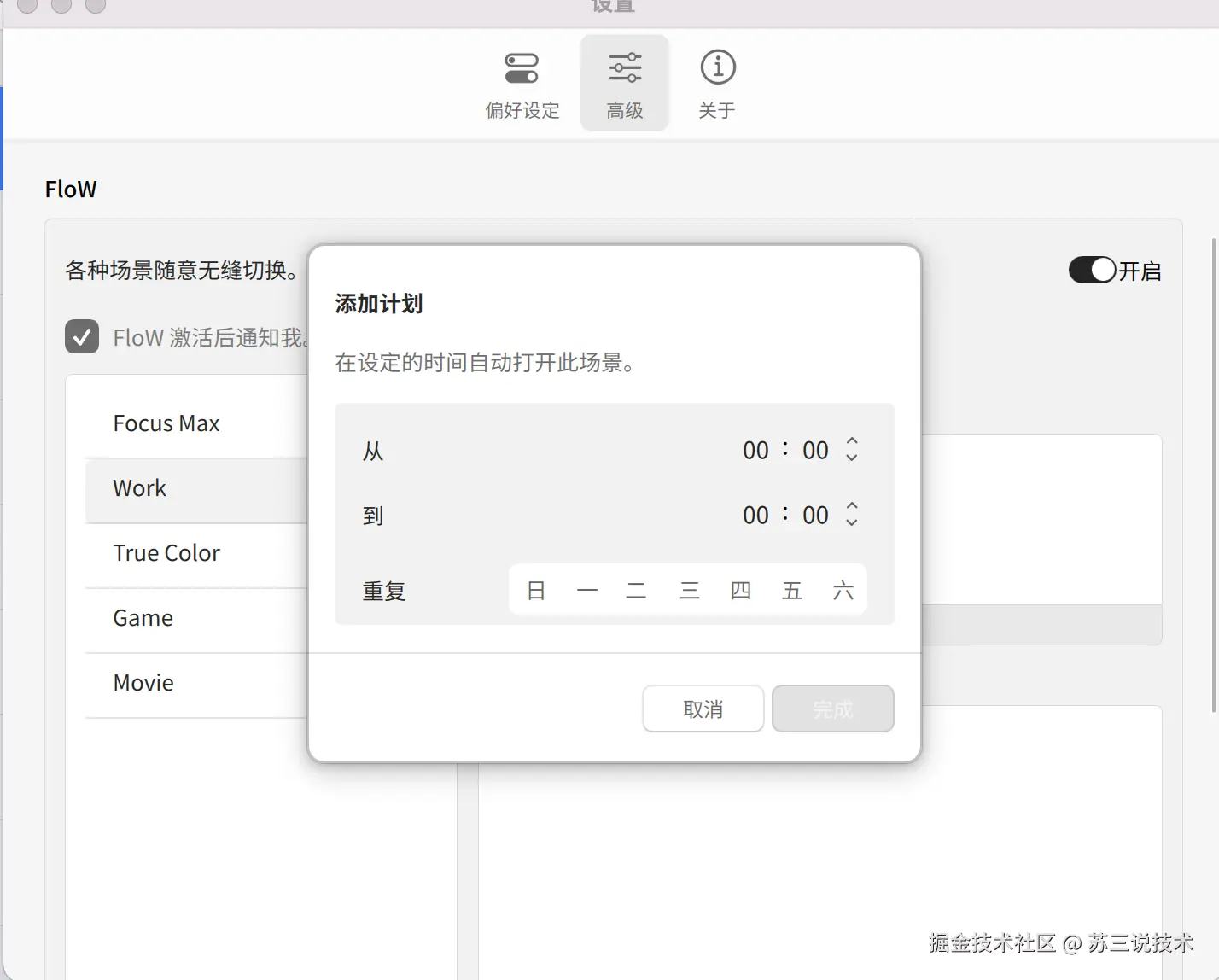 新增的flow功能可以设置特定时间场景下的一些显示器的参数。
