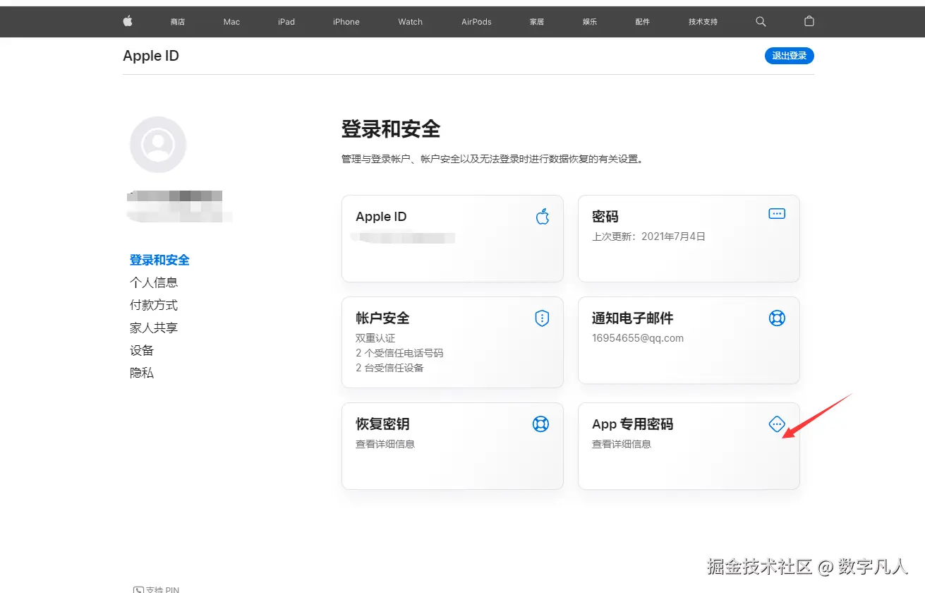 1.打开苹果开发者账户中心获取App专用密码,地址appleid.apple.com/zh_CN