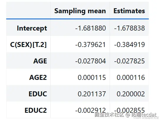 假设从原始数据中估计的参数是正确的,使用回归模型计算每个受访者的预测概率,然后用这些概率为每个受访者生成有偏差的抛硬币,将模拟值作为因变量运行回归模型。