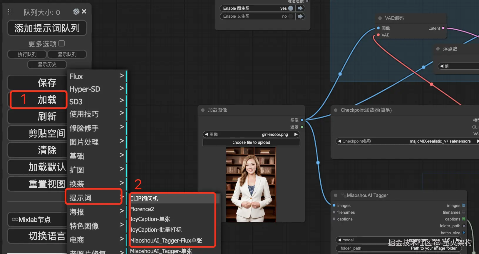 目前在ComfyUI中我们可以使用多种提示词反推方法,这里将逐一介绍。
