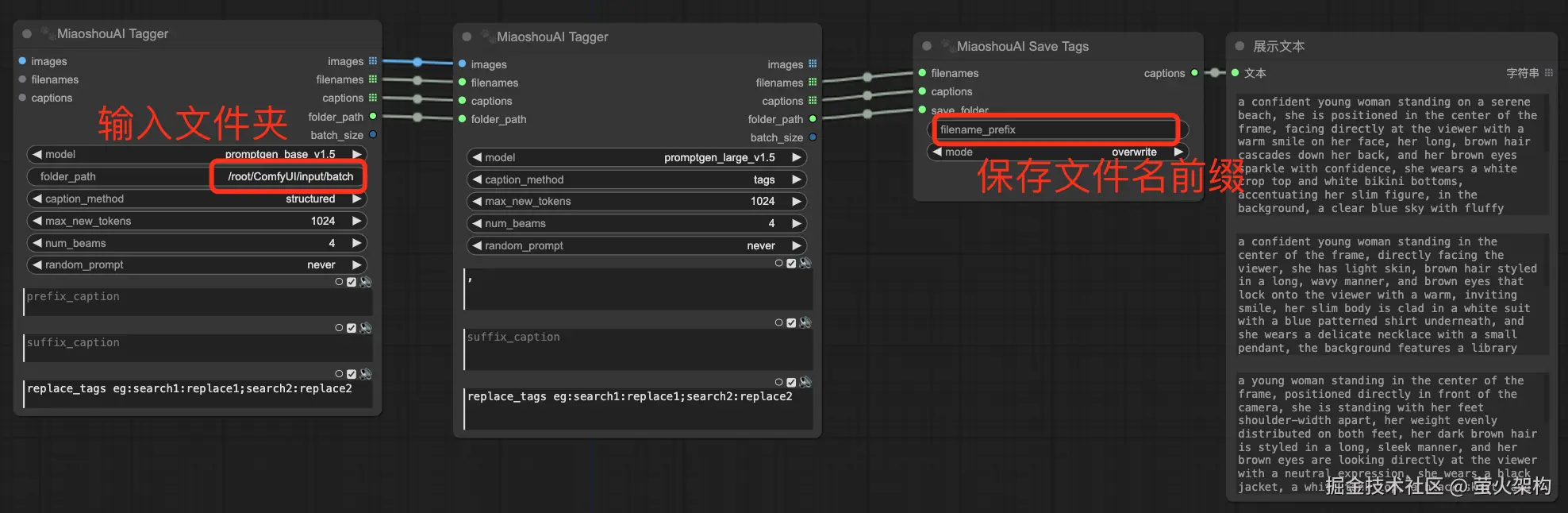这个插件的完整名称是:ComfyUI-Miaoshouai-Tagger。它也支持批量达标,方便大家去训练模型。