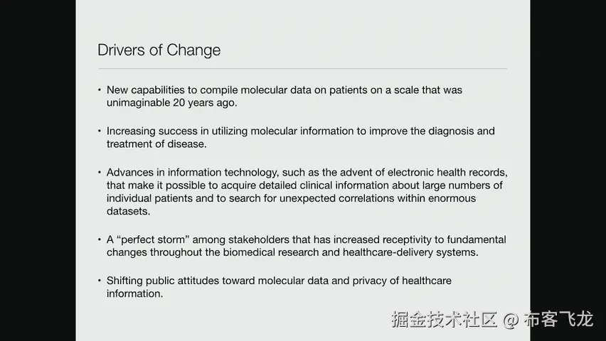 所以我想先回顾一下,一项由国家科学院国家研究委员会进行的研究,它被称为二字精准医学,这是一个相当近的二十七年,他们有一些有趣的观察。