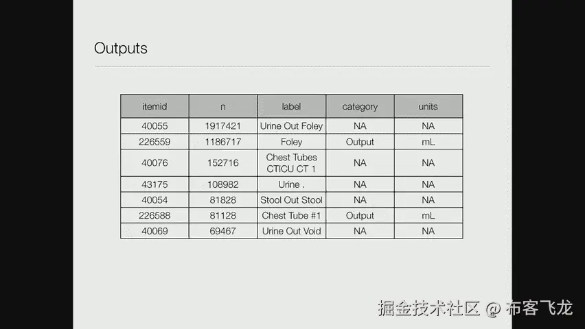 五个,每次入场的图表条目,所以你知道,每次接纳数以千计的图表事件,我们还跟踪输出,导尿管可以让你的膀胱引流,你没有有意识地去洗手间,所以他们收集这些信息,有一点,九百万个关于你膀胱流出多少液体的录音。