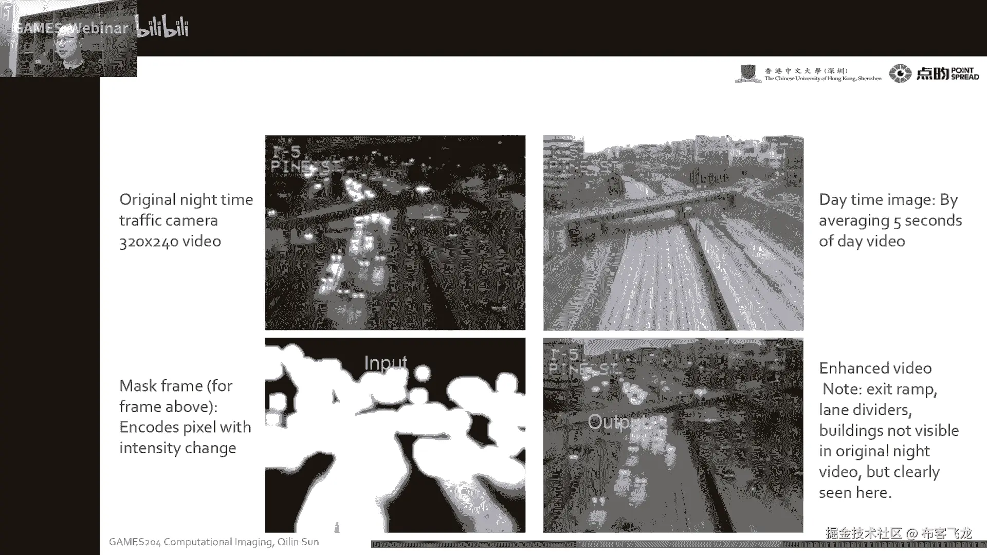 就可以得到一个enhance的一个night video,这个举个例子,这是我们夜间监控的一个马路上的一个行车诶。