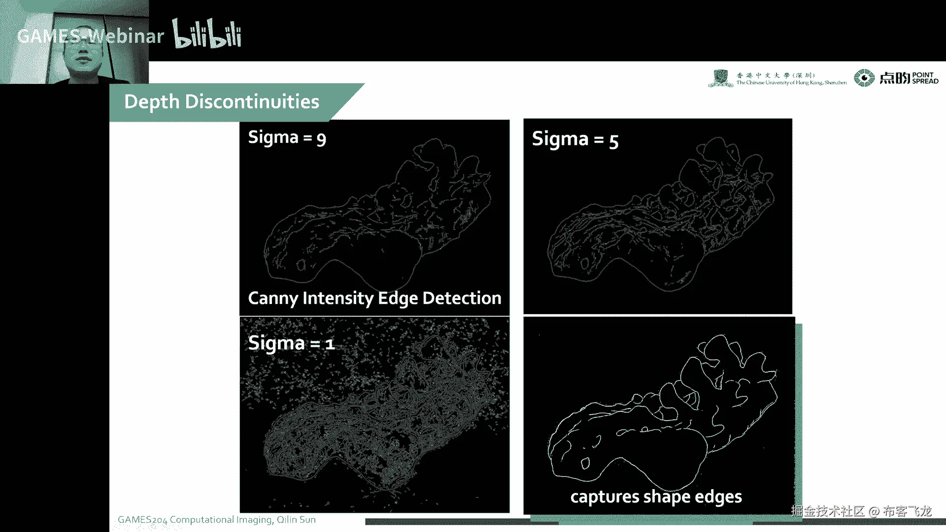 就是直接把这个reaction给做了,当然这个时候还会有很多artifacts没有很完美,然后再一个例子就是呃我记得我们深度深度图像的一个边缘,这个是怎么捕捉的。