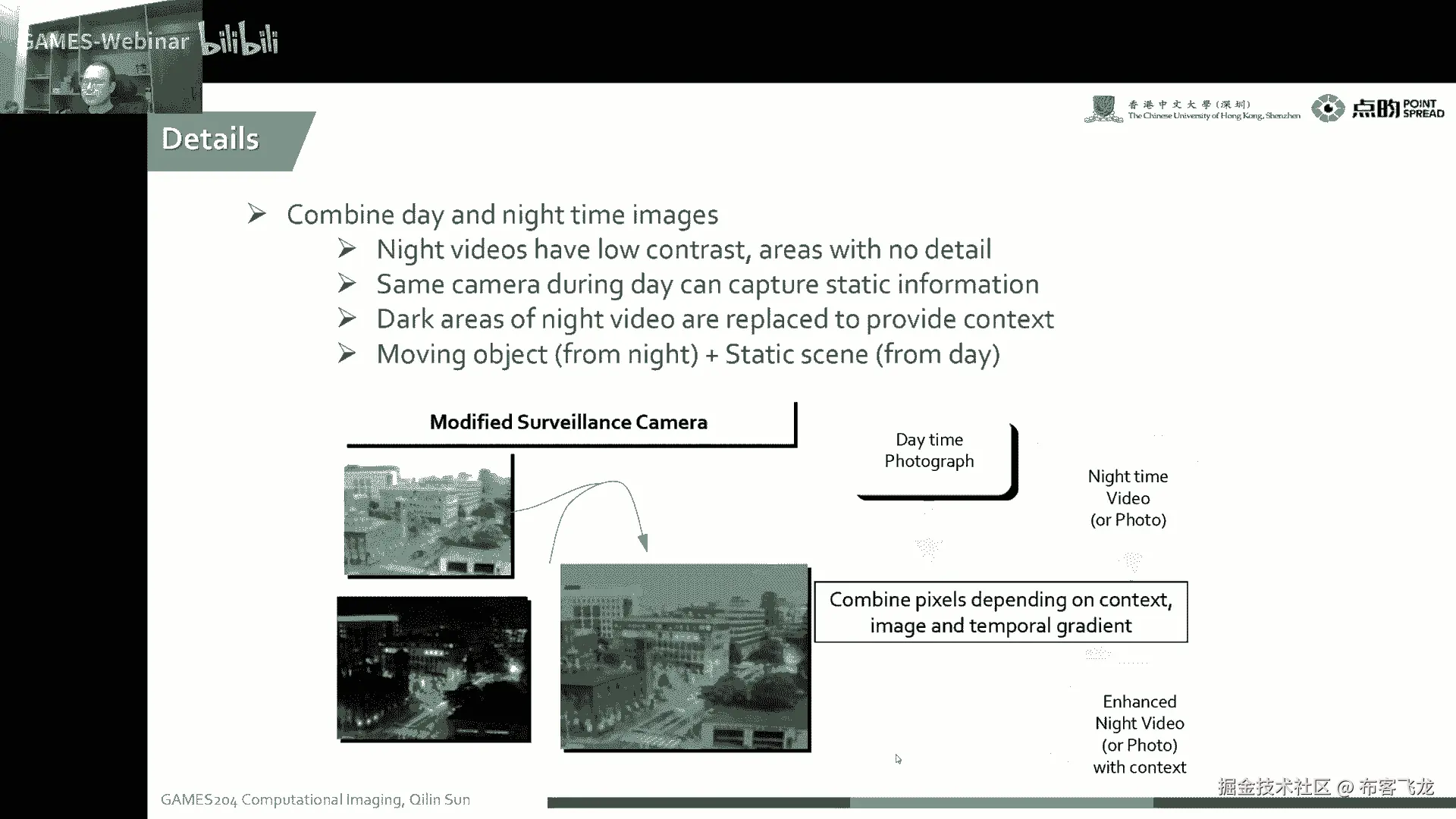 就我们本身夜间的图像那个contract会很低,然后细节也很低,这个时候呢,我们就可以在白天拍一张静态的一个图,把夜间的video跟白天的这张图去融合,唉最后我们可以就可以啊,把这两个融合之后诶。