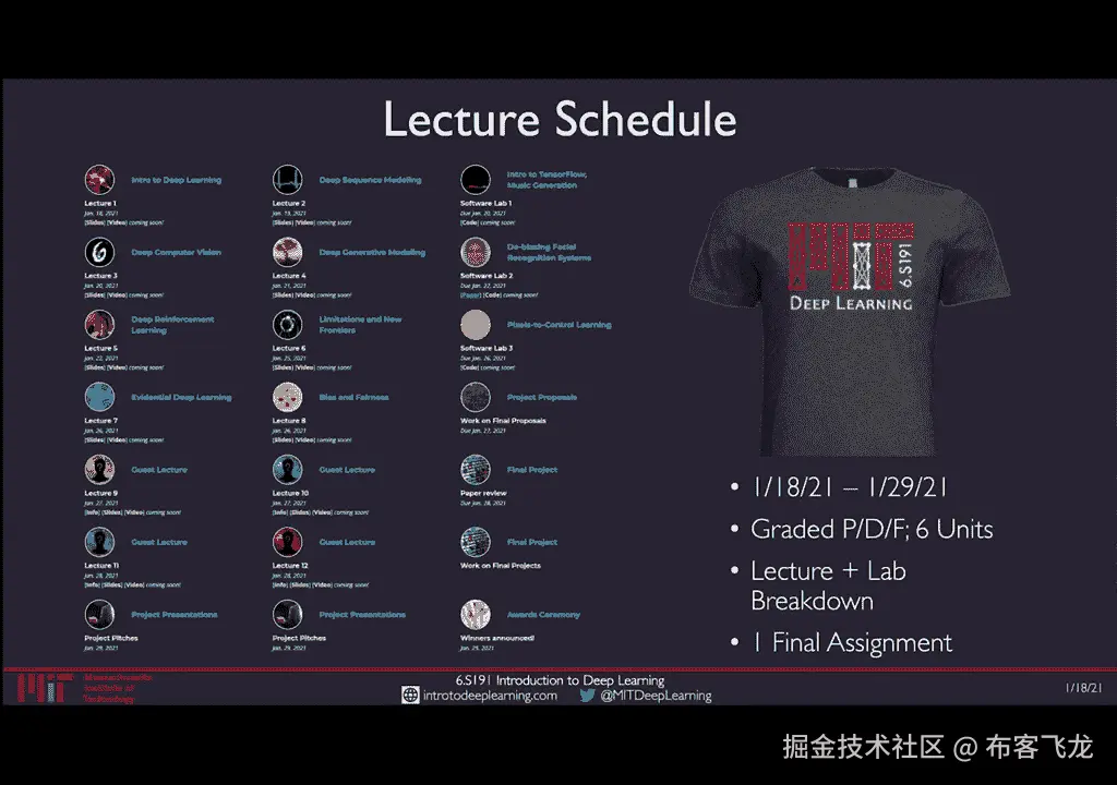 所以这门课分为技术讲座和项目软件实验室,我们将从今天开始用神经网络来覆盖基础,这些都是我们在本课程中所看到的一切的基石,今年我们还有两个全新的非常激动人心的热门话题讲座,关注不确定性和概率深度学习。