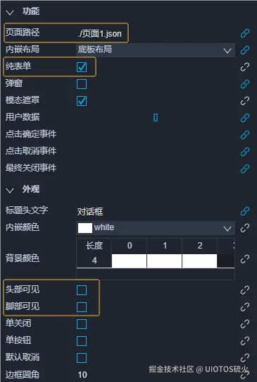 对话框作为容器组件,可以隐藏掉默认的窗体头和脚,完全由内嵌页自定义,参见对话框自定义外观。并且也能获取弹窗纯表单数据,如下所示: